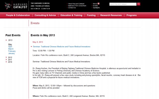日前,哈佛大学官方网站发布了张克镇院长将于2013年5月8日在Folin Wu会议室举办题为“中国传统医学与未来医学创新”研讨会的消息。