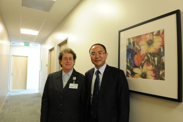 2013年5月16日,张克镇院长来到加利福尼亚大学旧金山分校,在访问时,该校“综合医学Osher治疗中心”主任Diane Sabin陪同张院长参观,并对该治疗中心进行了介绍。该中心最让人印象深刻的是其在医疗环境细节设计上的完善与人性化,这些设计几乎关注到了每一个细节,如对颜色的设计。Diane Sabin主任介绍说,当初设计的时单单在色彩上就花了很多心血,专业设计人员考虑到了每一个细节:不仅仅有如何让颜色看起来悦目,甚至还包括光线的变化对颜色的影响,更考虑到不同的科室需要不同的颜色配置。例如在儿童康复科里,色彩就鲜艳与活泼得多,这会减少儿童在就医时的恐惧感,甚至还配备了儿童喜欢玩的彩色玩具。这种对细节追求完善的严谨态度值得我们学习。