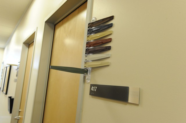 不同色彩的标签代表着不同的疾病种类,立起来的标签在告诉来人:正在接受治疗的患者是什么疾病。