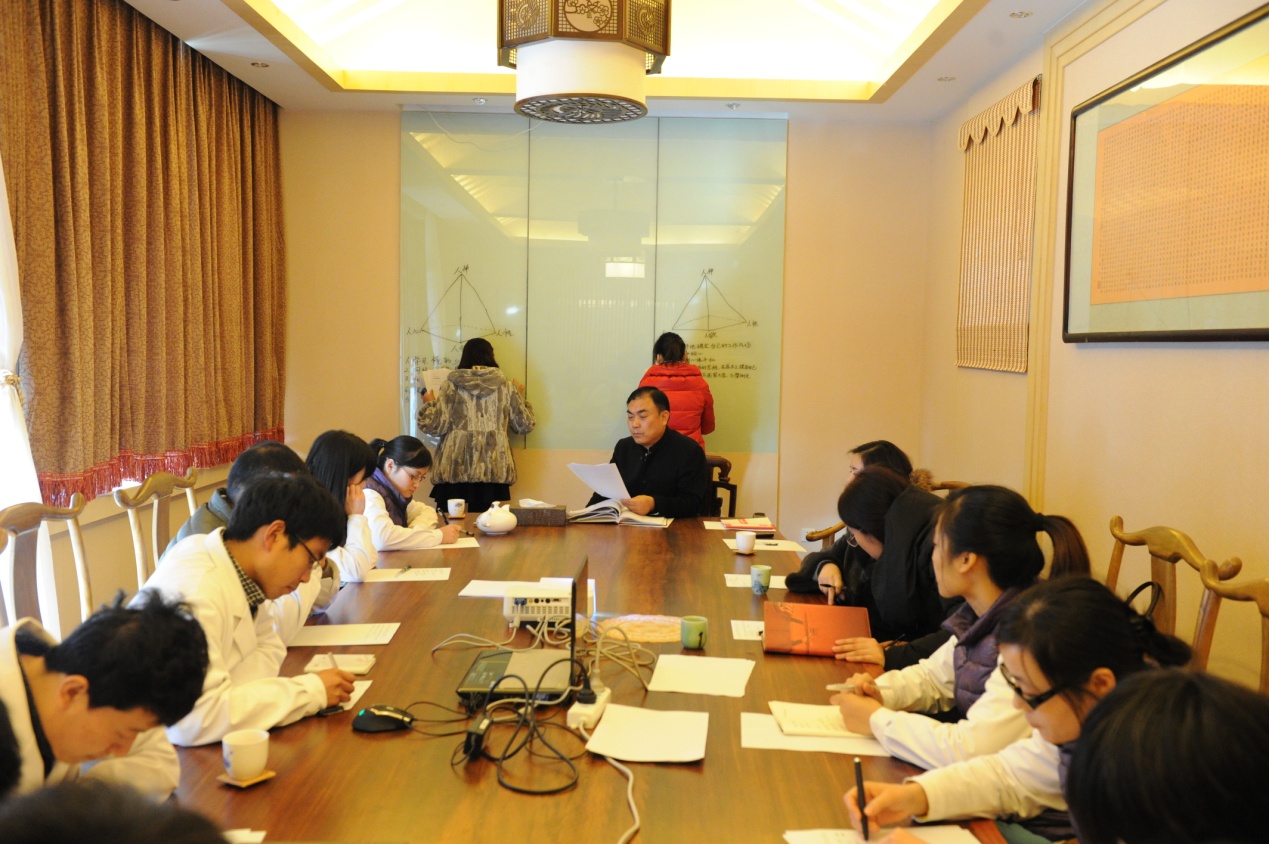 图为北京泰济堂中医医院董事长杜力女士(女士左二)和泰济堂员工一起听李志明先生授课。